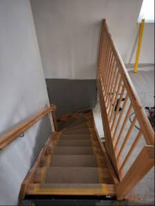 - Treppenbau: Die Fertigung und Montage von Treppen in verschiedenen Designs und Materialien ist eine Kernkompetenz der Bautischlerei.